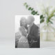 Det här är ett modernt och elegant svartvitt bröllop-kort som du använder med ett handskrivet skript som skrivs ut på ett vykort. Ändra enkelt färg, text och foto. På den omvända sidan finns ett tackmeddelande som du kan anpassa eller ta bort helt och hållet om du föredrar att ge skrivan ditt tack. Kontakta designern om du vill ha frågor som rör den här designen.
