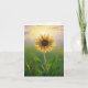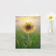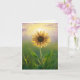 Solljus som lyser genom kronbladen på en enda solros i en grön äng för ett tack från avlidna familjen. Text kan ändras.