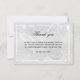 Ett enkelt och elegant tackkort för sympati med ett foto. En falsk silvermetallisk bakgrund, en vit ram, falskt glitterdamm och en fjäril som vattenstämpel både på framsidan och baksidan. Anpassa och lägg till ditt tackmeddelande. Svart text.