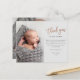 Det här moderna fotot-tackkortet har handskrivet skript i ro guld tack, personligt meddelande och ett lodrät på framsidan. Baksidan innehåller ett andra foto från baby som är ett fullt-utfallsfoto för vågrät.