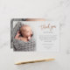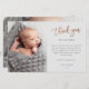 Det här moderna fotot-tackkortet har ro guld-skript tack, personligt meddelande och ett lodrät foto på framsidan. Baksidan innehåller ett andra foto från baby som är ett fullt-utfallsfoto för vågrät.