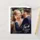 Det här budgetskriptfotot (Bröllop) - Tack för ditt kort innehåller snyggtens vita kalligrafi tack för att du skriver ut och utfallsfoto för fullt på framsidan. Baksidan har ett andra foto och ett personligt tack som du kan ta bort om du föredrar att lämna skriva i anteckningen. Klicka på knappen Redigera för att anpassa designen.