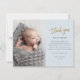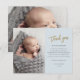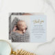 Det här moderna fotofotot-tackkortet har ett guld-skript tack, ett personligt meddelande och ett lodrät foto på framsidan. Baksidan innehåller ett andra foto från baby som är ett fullt-utfallsfoto för vågrät.