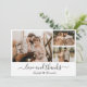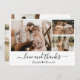 Elegant, Minimalistiskt ryggstöd och vitt handskrivet fotopatkort med Bröllop. Snyggt bröllop-kortmall med tre (3) foto framtill och ett foto baktill. Med texten "Kärlek och tack" i ett kursivt handskrivet skrivstift byts typsnittet svan ut. Lägg till ditt namn och tack. Litet hjärtdodle mellan namn. Om du föredrar att skicka anteckningen tar du bara bort exempeltexten för att få mer utrymme. Kontakta mig om du behöver hjälp eller matcha objekt!
