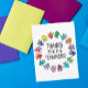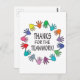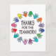 Tack för Teamwork med en cirkel av händer i starka färger för ett erkännande och uppskattningsmeddelande från ledning till anställd, lärare till studenter eller tränare till lag.