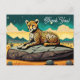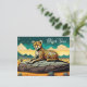 En vild leopard i tecknad stil ligger på en sten på en öken vykort.