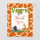 Ett party tackar dig vykortet med ett kallt safaritema. Bakgrunden är en giraff flår mönster. Designat med ett baner av djungellöv upptill och busigt hänga för apa som är uppochnervänt. En flodhäst, en gorilla, ett lejont och giraff som ut hänger på grunden i några savannahgräs.