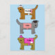 Tre funkyar tecknad hund har hatt och jackar med ord "Tack för" skrivet på hundar jacka. Bilden har en blek blå bakgrund för färgaden.
