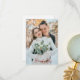Tom på baksidan för ditt handskrivna meddelande. Anpassningsbar Foto och Namn. Enkelt. Vinterbröllopsfoto, tillval. Röd text.