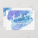 Älskvärda moderna kort för vattenfärgsympatiTACK med främre text. Blått kricka, turkos, lila, violett blandning av färger. Skriva brev. DRA TILLBAKA AV KORT kan vara tomt att tillfoga ditt handskrivna meddelande. Ge dessa kort under begravning eller överför after.