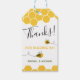 Våra märkre med vattenfärgade bin vill tacka gästerna för att de "surt av" ditt bitemeterade evenemang eller barndusch. Konstruktionen har en asymmetrisk bikaka av gult mönster gräns som upprepas på baksidan, i roligtens skripttypografi och i den moderna blockeringen i grönt, gult och svart. #BumbleBees #Tack #PartyFavors