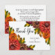 Ditt älskade liv var vackert och borde firas. Säg tack till vänner och familj för att de har varit så tanklösa med vår ursprungliga blommigt för vattenfärgsfall från Helgdag Hearts Design (alla höger reserverade). Frontuttrycket är "Tack" och "från familjen av . . ". Baksidan innehåller ett budskap i två stycken: ett för att uttrycka er tacksamhet och ett för att be firande om hennes liv. Båda kan vara personlig eller ändras efter behov för att få ditt unika uttryck. De läser: "I vår sorgetid är det med djup tacksamhet som vi uttrycker vår uppskattning för ert vänliga ord och er omtänksamhet." och "När tiden går hoppas vi att ni kommer att minnas henne med fräckhet och fira det skönhet som var hennes liv."