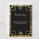 Det här Art Deco-svarta och guld-Bröllop-tackkortet från brudgummen är glamoröst och dramatiskt. Den har modern typografi och den elegant geometriska mönster kommer att föra er tillbaka till 1920-talets klassiska lyx.