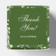 De här 2-tums fyrkantiga gröntarna innehåller en elegant vit löv och punkt mönster, ord "Tack" och namn med chic vit text överst. Perfekt till bröllop, möhippa, årsdag, jul eller något annat särskilt tillfälle. MATCHING-objekt och mer färg i vår samling.