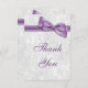 Det eleganta tack sänker kort för baby shower etc. som skrivs ut på inbjudanpapper. Avbildar damastast mönsterbakgrund för härlig vit med en söt, stilfulla lilor/lilan/det lavendelpilbågen och bandet. Dessa glamoröst, chic, flott tackar yous är beautifully sofistikerat och dekoreras/skrivs ut på båda sidor. Jag har att matcha inbjudningar och andra matcha produkter i mitt lager. BEHAGA NOTERAR: Alla inbjudan på Zazzle har lägenheten utskrivaven bilder. Pilbågar och rosett bandbilder som inhandlas från digital-design-vid-elena. Om du behöver någon hjälp som skräddarsy din produkt, behar kontaktar mig till och med mitt lager och, jag ska är lycklig att hjälpa.