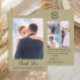 Tack - Foto Collage i Linnegrönt för Bröllop Kort