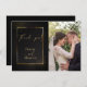 Lägg till ditt bröllopsfoto till detta Eleganta svarta och gyllene Tack - en gyllene ram omger detaljerna med en strödd gyllene glitter. Skapad för BarefootBride™ av © WhimsicalArtwork™ Anpassa text, typsnitt, färg och storlek. Vi skapade denna mall för att göra det enkelt för dig att anpassa med din egen information. Detta är en del av en komplett bröllops brevpapper-svit med matchande bröllop, baby shower och andra evenemangs brevpapper designade av © WhimsicalArtwork™.