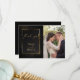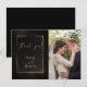 Lägg till ditt bröllopsfoto till detta Eleganta svarta och gyllene Tack - en gyllene ram omger detaljerna med en strödd gyllene glitter. Skapad för BarefootBride ™ av © WhimsicalArtwork ™ Anpassa text, typsnitt, färg och storlek. Vi skapade denna mall för att göra det enkelt för dig att anpassa den med din egen information. Detta är en del av en komplett bröllopspresentationssvit med matchande bröllop, baby shower och andra evenemangspresentkort designade av © WhimsicalArtwork ™.