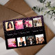 Ett fotokollage tackar dig kort för flickor och kvinnor. Anpassa och lägg till 8 av dina 21:a (eller alla åldrar) födelsedagsfest foton på framsidan. Texten: Tack (x3) En elegant svart bakgrund och rosa lila konetti. Din tackkort och namn. Svart bakgrund, vit text.