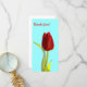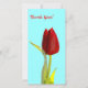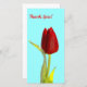 Tack Fotokort. Röd tulip på ljusblå bakgrund.