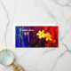 Tack Fotokort. Tho gula blommor, röd och blå bakgrund.