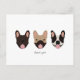 Illustration av tre Franskar Bulldog-valpar av olika färg.