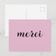 Merci Franska språk betyder Tack, Tack så mycket vykort. Typografi, typografisk, modern minimalistisk, kalligrafi Textpåståenden på t-shirts och presentartiklar. Du kan enkelt överföra denna design till över 1000 Zazzle-produkter. Klicka på bilden "Överför design till en produkt" som ligger direkt ovanför denna produktbeskrivning. Tack!