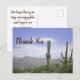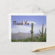 Hyrning av hus blir mer och mer populärt och konkurrenskraftigt. Sätt din uthyrning i klass för sig jämfört med din konkurrens med detta prisvärda vykort. Detta vykort har en vacker ökenlandskapsfotografi från Phoenix, Arizona-området. Den höga saguaro-kaktusen står hög mot den blå himlen dekorerad med långa, tunna moln. De avlägsna bergen ger djup åt detta foto och förmedlar de stora öppna ytorna i Arizona. "Tack" visas på framsidan och baksidan har ord av uppskattning för din gäst och önskan att se dem igen snart. All text kan anpassas för att passa dina behov.