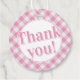 Säg "Tack!" med coolans rosa och vita gingham checkar mönster. Det finns en cirkel i mitten med rosa och vitt ringar för din text. Den klassiska geometriska designen är en coola för din födelsedagsfest och för alla åldrar, och tillfällen eller firande. Ändra bara texten så att den matchar händelsen.