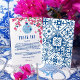Medelhavsinspirerad grekisk musikalisk bougainvillea mia baby shower tack-kort. Fördjupa dig i den mediterrana charmen med Mamma Mia-temat baby shower-kollektionen! Fira din lilla enas ankomst bland de lugna nyanserna av blå och vit kakel som påminner om Santorinis havskust. Inbjudningarna är gjorda med lekfull elegans och rosa bougainvillea, medan skyltarna och dekorationerna är färgglada och vackert framhäver baby shower-firandet. #zazzlemade