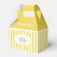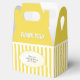 Säg tack till gästerna i party med textmallarna som gör det enkelt att ändra texten till ditt språk, till namn som första språk eller till ett monogram. Texten "Tack!" och meddelandet längst ned på framsidan har båda mallar. Bakgrunden är ett enkelt rent utseende med pastellgult och vitt lodrät rand för ett heltäckande, geometriskt tryck. Lämpligt för alla åldrar eller tillfälle. Obs! Om du vill ta bort text ersätter du den med ett tomt blanksteg i mallen.