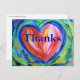 Kortmeddelandet lyder: "Tack". Målningen visar ett färggrant rött hjärta med inslag av vitt och guldaccentuerinar. Hjärtat är konturerat i blått och har en mjuk grön bakgrund. Denna hjärtamålning är en hyllning till att hålla hoppet kvar i ditt hjärta när den sorgsna bluesken omger dig, men ändå tar sig igenom för en grön förnyelse.
