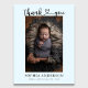 Födelseannonsering med Tack i manuskript kalligrafi med ett hjärta.