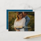 Tack I Kärlek Bröllop fotot Golden Script Blue Vykort