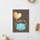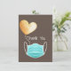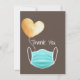 Ett hjärtligt tack för elitarbetare, nödvändiga medarbetare, förstahandssvarare, vänner, familj och andra samhällsmedlemmar som kan ha varit till hjälp för dig och dina under Coronaviruspandemin eller andra medicinska nödsituationer. Har blå ansikte-mask med vattenfärgad hjärtballong på brun bakgrund.