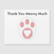 Ett underbart vykort med en svart-vit katts tass med ett hjärta och texten "Tack Meowy Mycket". Texten på kan anpassas efter dina behov!