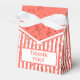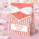 Säg "Tack" till gästerna i party med ditt kort-meddelande, som är tryckt på framsidan under klaffen, med hjälp av de mallar som finns. Det är lätt att ändra ord till ditt språk, namn, ursprungliga språk eller monogram. Både "Tack!" och kort-meddelandet har textmallar. Bakgrunden är ett enkelt rand mönster med korall och vitt lodrät rand och konetti för ett geometriskt heltryck. Utformningen är lämplig för tillfällen, alla åldrar och alla gender. Dessa rand är roligt att backa små gåvor eller party favors för födelsedagar, årsdagar, studenten, duschar med mera.