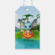 Skräckiga Baby Dino presenttaggar på en barnkalas, varje tagg ger en lekfull blandning av söta dinosaurier och skrämmande kul. Presenttaggarna visar söta baby dinosaurier som perfekt kombinerar dino charm med Halloween-vibbar.I mitten av varje tagg finns utrymme för ett anpassat foto av födelsedagsbarnet.Dessa taggar är perfekta för att fästa på kalasfavoriter, presenter eller godispåsar, vilket ger varje en minnesvärd, personlig touch. De livfulla färgerna - lila, grönt och orange - kompletterar det skrämmande baby dino-temat, vilket gör presenttaggarna inte bara till ett praktiskt tillägg utan också till en rolig souvenir för gästerna. Dessa Skräckiga Baby Dino-presenttaggar med ett anpassat foto kommer säkert att göra varje present eller kalasfavorit extra speciell, vilket skapar ett bestående intryck på din barns födelsedagsfirande!