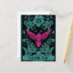 Tack-kort. Exotisk rosa fågel, dunkelblå Vykort