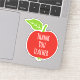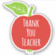 Tack Lärare, vit typografi, röd äppeletikett. En vismisk design som visar ett rött äpple med grönt löv och texten "Tack Teacher" i vitt. Visa din favoritlärare din uppskattning med det här söta klistermärket.