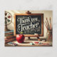 Här är ditt vykort för lärarveckan i akvarellstil! 🎨📚 Bilden visar en vintage svart tavla med elegant vit kalligrafi som lyder "Tack lärare!", tillsammans med klassiska äpplen och bok-element i en mysig klassrumsmiljö.