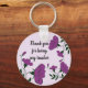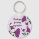 Läraruppskattningen är en unik nyckelkedja som har en tydlig lila blommor som vind och kurvformar sig längs den billiga rundnyckelkedjan. Blommornas ljusa lila kompletteras av de mörk grönt löven och stjälkarna. "Tack för att du är min lärare" kan snabbt och enkelt anpassas efter dina behov till kostym så att den här presenten kan komma antingen från ett enskilt student eller från en klassgåva.