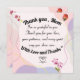 Ett mjukt tack och ett tack för eleganten som innehåller en delikat blandning av ljusa rosa och lavendeltoner, som framkallar värme och ömhet. I mitten visar en hand som bildar symbolen kärlek djup tillgivenhet, medan vackra orkidéer blåser i närheten och symboliserar skönhet och styrka. Det hjärtligaste budskapet lyder: "Tack, Mamma. Jag är så tacksam mot dig. Tack för ert tålamod, ert tålamod och varje tyst sätt att visa aktsamhet." En rörande hyllning till mor närvaro och oändligt stöd till perfekten för att visa uppskattning utanför tillfälle.