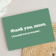 Det här enkla, roliga kortet innehåller texten "Tack mamma, jag visade fantastisk" i en underlig modern typografi på trendigets grönt.