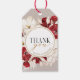 Tack med röda och vita blommor presentetikett