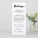 Framsidan är ett tackkort och formuleringarna, namnen är redigerbara. Baksidan är meny och rätternas namn och beskrivningar är redigerbara.
