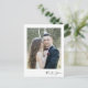 Modern bröllop tack-kort i en handskriven skriptdesign med ett favoritfoto från ditt bröllop eller smekmånad. Ladda upp dina foton och anpassa baksidan av vykortet med din returadress och tackmeddelande.