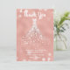 Tack för den moderna möhippan med ett rosa, trendig ro guld färg-program - "Tack" överst i modern text. Center är en vacker, faux diamant gemstones formella klänning i bröllop. Ett tack i modern skrift. Personlig med framtida bruds namn nedan för att matcha stil. Populär, faux-ro-guld-bakgrund med stora vita, genomskinliga champagnebubblor spridda överst och grund. Baksidan har samma faux ro guld-folie med vita punkter gräns överst och grund. möhippan i eleganten är ett tack för redot att vara personlig med dina egna detaljer. Vi har samordnat ro guld möhippa inbjudan och bröllop i vår Zazzle.com/angela65*-butik.