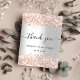 Ett tack för en Möhippa. En faux silver metallisk tittar bakgrund. Med damm från ro guld faux glitter. På stora bokstäver och text framtill: Tack, text, titel och datum. Tillbaka: Anpassa och lägg till tackkort och namn.