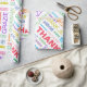 En roligt och glad omslutning papper för att följa med en tackgåva. Den enkla utformningen har Tacken ord som upprepas i olika färg och 20 olika språk.